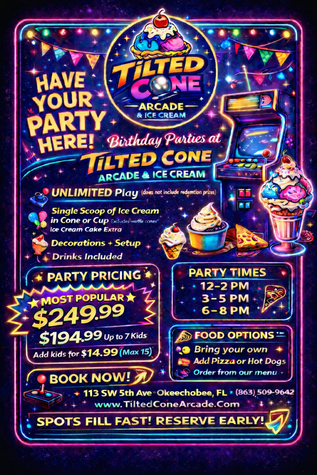 Tilted Cone Arcade parties cover all the essentials and then some.